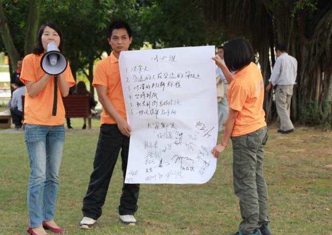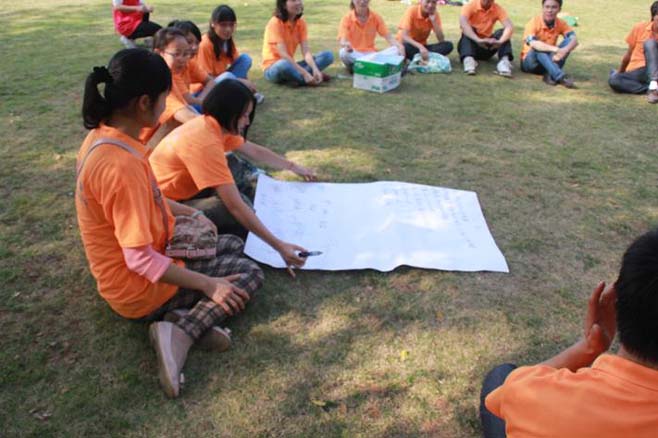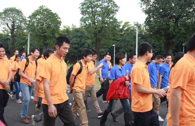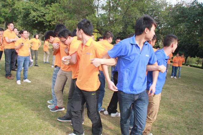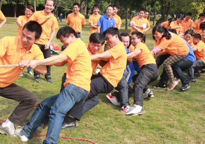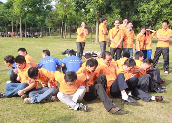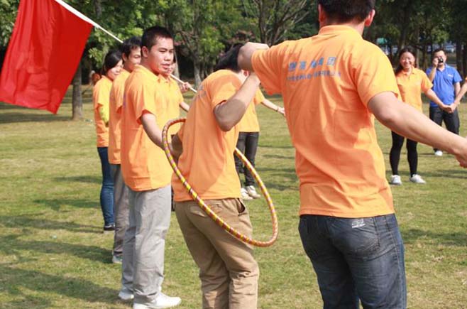 戶外拓展活動開始了!先是由我們總經理致詞,講述活動的游戲規則,分成若干組進行比賽。我們的比賽項目有:“拔河比賽”、“同心協力”、“轉呼啦圈致力”、“盲人踢球”等等,活動勝出的組,還有豐富的獎金及禮品。