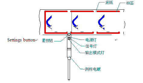 短按自動設(shè)置按鈕【“AUTO SET”】,綠燈和黃燈熄滅,電眼捕捉介質(zhì)信號,此時(shí)不可移動標(biāo)簽,直到綠燈快速閃動為止。