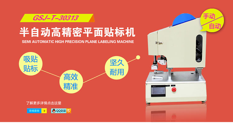 半自動(dòng)高精度平面貼標(biāo)機(jī)(含顯示屏),其型號(hào)為GSJ-T-30313,屬于半自動(dòng)貼標(biāo)機(jī),應(yīng)用吸貼方法貼標(biāo),實(shí)現(xiàn)在各種工件的平面上貼標(biāo),如化妝品扁瓶、包裝盒、塑料蓋貼標(biāo)等。