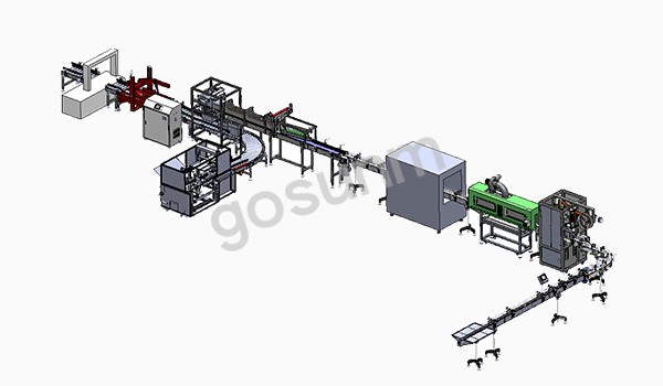 半自動理瓶—自動套標--自動烘干-自動頂部貼標--自動分揀--自動開箱--自動裝箱--自動封箱--自動打包