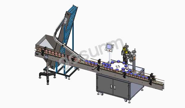 機器優點:直線式設計,組成流水線方便美觀。主機速度采用進口變頻器,能進行無級調速。采用強電磁左旋蓋扭力器,徹底解決了傳統機械摩擦片在旋蓋時緊時松的弊病。