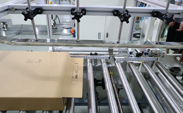 調整封箱機參數:根據紙箱的厚度和材質,調整封箱機的壓蓋力度和膠帶的松緊度。確保膠帶能夠緊密貼合紙箱,從而提高封箱效果。