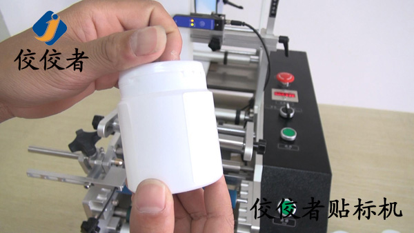 生活中我們經(jīng)常會見到貼這各種標簽的白色塑料小藥瓶,今天就來介紹這些白色塑料小藥瓶上面的標簽是怎么貼上去的,先來看看這臺半自動塑料圓瓶貼標機(又稱半自動圓瓶貼標機)的圖片吧。
