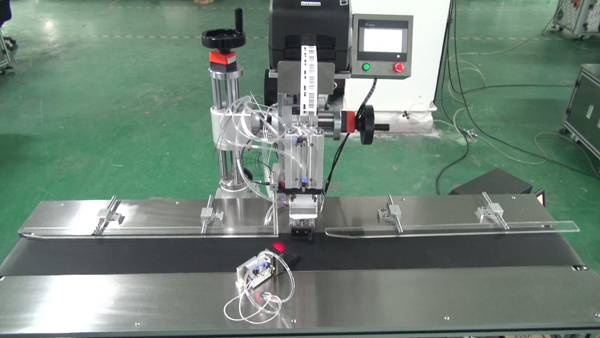 3、在產(chǎn)品達(dá)到測物電眼前,貼標(biāo)機(jī)標(biāo)頭整體機(jī)構(gòu)已經(jīng)在按照要求進(jìn)行標(biāo)簽打印,
