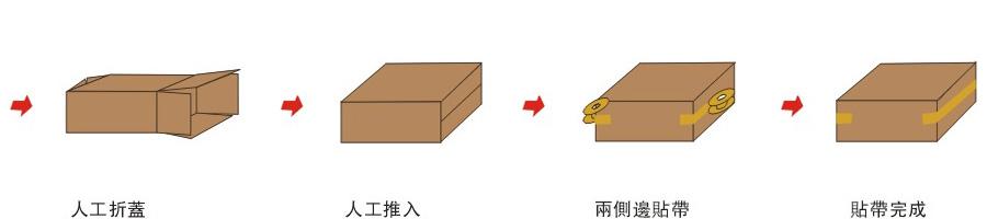 ◆ 該包裝設備適用于側邊開口的紙箱,如飲料、地板磚等※ 上下皮帶驅動,兩側封箱,經濟,快速,平穩。